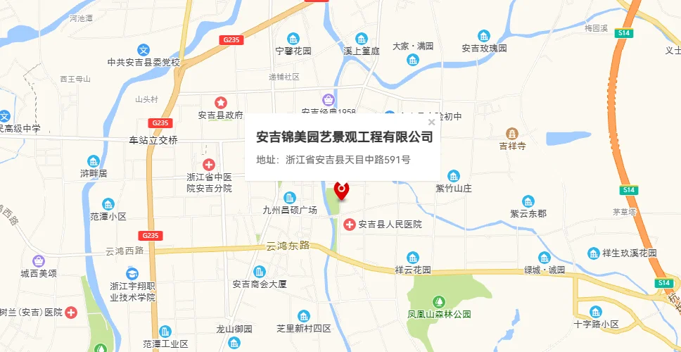 浙江省安吉县天目中路591号(昌硕公园老年大学对面)