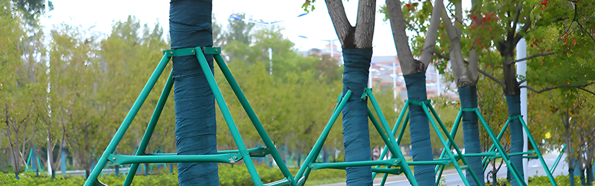 本公司研制的一种树木支撑保护套,目前,公司各个施工工地已正式投入使用。